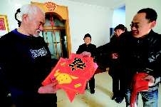 ▲记者一行敲开了前进社区刘乃柱家的房门。当女主人得知记者们是给他们家送福字的,高兴地将大家领到客厅。女主人手里拿着红红的福字,高兴地说:“快过春节了,我正打算去买几个福字,装扮一下家里,正好你们组织了这次活动,给我们家送来了福字,太感谢了。”