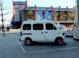 16日,市民张女士向记者反映,在沂蒙路与砚池街交会处西南角的人行道上,停放着一辆白色面包车,一个多星期了,这车停放的位置一点没变样。16日上午,记者来到该地点看到,这里果然停放着一辆白色面包,斜占着两个停车位。