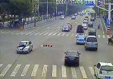 当日,张某驾驶的无牌车顶着协警狂奔。 (监控录像)