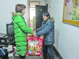 本报1月19日讯(记者 殷亚楠) 19日下午,尽管室外温度基本在零下,但信义庄小区困难居民陈玉秀家里却暖意融融。上周,热心市民党女士看到本报助贫迎春活动报道后,便打来电话说想给困难家庭送点年货。根据信义庄社区的推荐,在本报的联系下,党女士和陈玉秀结成了对子,并为她送来了年货。 油、火腿、牛奶、新买的被子……19日下午,党女士带来了很多年货。在听说陈玉秀的女儿今年上初三时,她还专门买了一件漂亮的羽绒服和一包旺旺大礼包送给孩子。