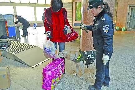 况,便会向民警发出信号,找出危险品所在处,在解决春运安全问题上帮了民警和铁路部门的大忙。 不仅出动搜爆犬,为加强火车站的安保工作,济南火车站民警也是全员上岗,不仅对进站旅客进行检查,还积极向旅客宣传乘车注意事项等知识。在站台车厢的入口,工作人员也是举着“严谨携带危险品进入”的牌子进行宣传,还会对一些乘客行李进行重新检查。