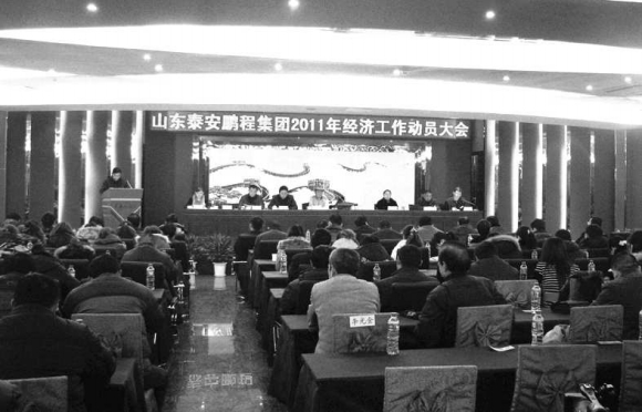 山东泰安鹏程集团年会在泰安华泰大酒店召开。该集团经过近五年的发展,已经成长为集房地产开发、建筑工程安装、建材销售、物业管理服务等于一体的大型综合企业集团。 (李诚春)
