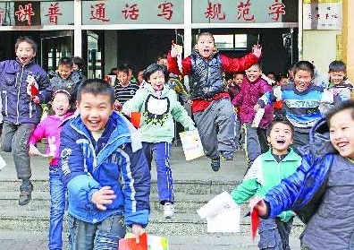 “放假喽!”1月19日下午,德州市实验小学的孩子们高兴地跑出教学楼。按照上级要求,德城区各中小学近5万名学生于1月20日(农历腊月十七)放寒假,2月18日(农历正月十六)正式开学。 本报通讯员 高向阳 摄