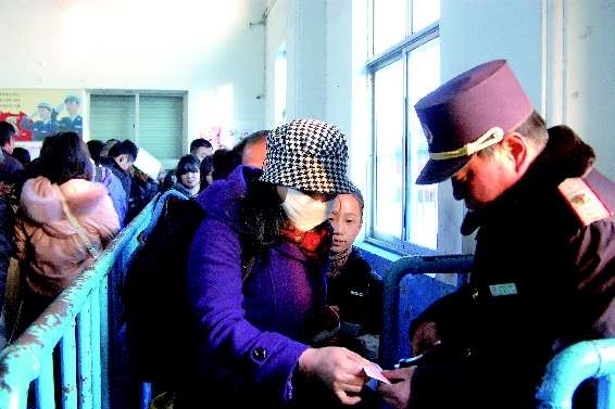 19日下午4时40分左右,准备乘坐东营至南京西的2558次列车的旅客正在接受检票。19日是春运开始的第一天,记者从东营汽车总站和火车站了解到,截至当日下午4时30分,铁路方面共发送旅客900多人次,汽车总站共发送旅客约4500人次。