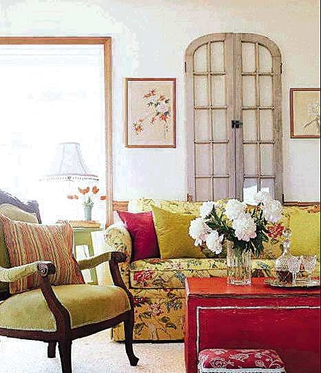 在这间起居室的墙面上,安装了一扇法式门板,顿时增添了房间中欧洲气味。如果家里没有很好质地的老家具可供运用,不妨去看看古董家具店,或旧货流转商店里,说不定就逃到了另一户人家的传家宝。