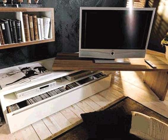 摆放客厅组合柜的墙面恰好有窗子,白天看电视,光照会影响画面效果,这种可旋转台面能轻松解决这一问题。大家一起看电视的时候,能让每个人都拥有舒适的观看角度。