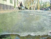 当日上午,记者在现场发现,人行道结冰路面,有三四十米长,结冰厚度约一厘米,来往行人非常小心,多数都是老年人和孩子。有些骑自行车出行的市民到了此处都停下来,将自行车推过去。人行道上结冰,机动车道也未能幸免,到处都是被轧碎的冰块和泥水。据家住附近的一位居民介绍,路面结冰已经好几天了,是由于路边的一间门头房水管冻裂漏水导致的。市民耿先生也说,这间门头房没人住,这两天天冷可能水管冻裂了,漏水好几天了。