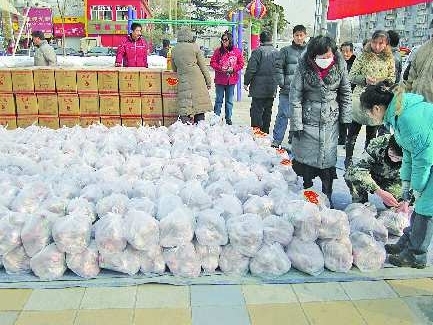 20日,响应本报与济南慈善总会联合发起的张刚大篷车助贫迎春行动,历下慈善总会启动“情暖万家”实物救助活动,每户50斤面粉、10斤精肉、10斤花生油等物资到位,陆续发放到680户贫困居民手中。 本报记者 殷亚楠 摄