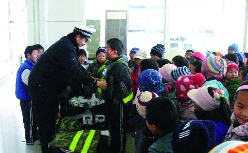近日,广饶县交警大队邀请了丁庄镇小学部分学生到警局参加“警营开放日”活动。在活动中,民警以简明易懂的语言向学生们介绍了各种警用器械及其使用方法。此外,还重点向们讲解了近期几起校车交通事故案例,教育、引导学生从我做起、从现在做起,珍爱生命、平安出行,自觉遵守交通安全法规。