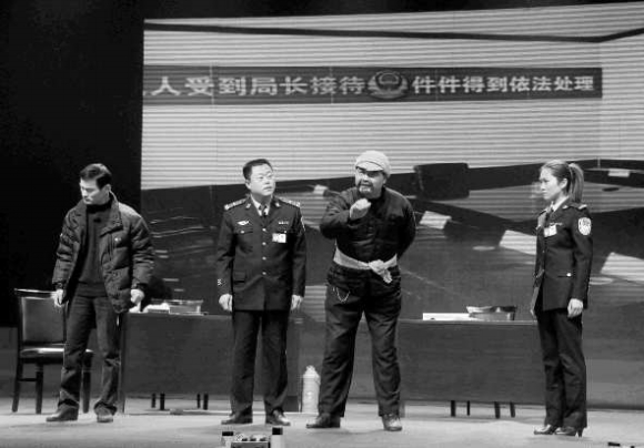19日晚,聊城市公安局贺“两会”迎新春2011春节文艺晚会在市影剧院隆重举行。晚会分为使命篇、和谐篇和忠诚篇,围绕亲民公安的主题进行,节目全为民警或家属自编自演。