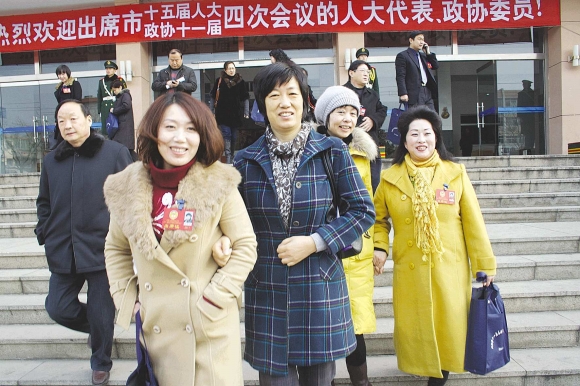 20日,英姿飒爽的女政协委员们走出会场,成为一道靓丽的风景线。当天,泰安市政协十一届四次会议开幕。