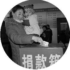 西大街村村民正在向慈善工作救助站捐款。 见习记者 王平 摄
