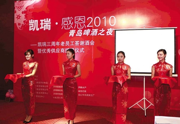 我们领略过奥斯卡颁奖典礼璀璨夺目的红毯走秀,目睹过风尚大典红毯之上的众星闪耀,期待过金马奖风格迥异的红毯盛会,今年,企业的老员工成了红毯秀的主角,近日,笔者走访了山东凯瑞酒店管理有限公司由国际知名品牌“青岛啤酒”冠名的老员工红毯秀晚宴。