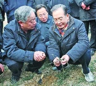 1月22日清晨,温家宝走进鹤壁市淇滨区钜桥万亩粮食高产核心示范区,实地察看旱情。河南农业大学教授、农业部小麦专家组副组长郭天财介绍了当地旱情,称当地到现在100多天内有效降雨不到3厘米,旱象严重,旱情正在持续加深。他并表示,要想有好收成,必须立足抗大旱、抗长旱,抗旱夺丰收。