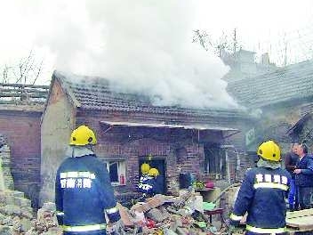 1月22日清晨7时许,经三纬四附近一处居民房突然着火。济南公安消防八中队的官兵迅速赶到扑救,并从屋内抢出一个煤气罐。半小时后,火被彻底扑灭。