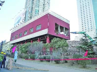 齐鲁宾馆老楼的爆破已经进入倒计时!1月23日下午,为配合即将进行的齐鲁宾馆爆破,宾馆东北侧的红色配楼也于当日拆除。楼前经十路人行道上拉起了封锁线,并立起了“施工危险,禁止停车”的牌子。“一千多个炸药孔已经打完,很快就要安装炸药。”施工人员表示。 本报记者 李飞 摄影报道
