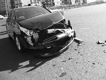 1月23日中午,在东一路和府前大街交叉路口,一辆由东向西行驶的蓝色雪铁龙轿车因抢红灯,撞上了一辆公交车。据了解,雪铁龙轿车保险杠被整体撞下来,水箱也已破损,事故中没有人员伤亡。 本报见习记者 张琳琳 摄影报道