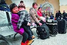 23日下午3时许,在南候车室里,四个只有八九岁的孩子一字排开,蹲在椅子下面吃泡面。“我们要回家了。”只有7岁的唐春亮显得格外高兴,因为方便面很辣,他吃完一个劲地往外吐舌头。唐宏广说,他们老家是广西桂林的,这四个孩子有两个是他的,另两个是他哥哥的。