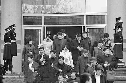 济宁市第十五届人民代表大会第四次会议,在圆满完成各项议程后,于21日上午在声远舞台胜利闭幕。图为代表们走出会场。