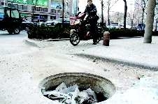 23日,在民生街和青年路交叉路口东侧,一处窨井的井盖丢失,井内还装了不少生活垃圾,窨井周围未设警示标志,给行人带来极大的安全隐患。