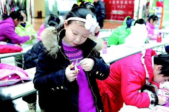 在烟台市青少年宫举行的“新春寄语”少年儿童贺卡现场设计制作大赛上,近百名少年儿童充分发挥他们的想象力,精心制作着自己的贺卡。