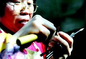 被奉为“文房四宝”之首的毛笔,以制作材料不同分为南北两派。以狼毫为材的“北派”代表莱州毛笔因其丰厚的文化底蕴和独特的制作风格为世人所青睐,历史上曾与“南派”之首、取材羊毫的“湖笔”平起平坐。南北二派制笔工艺最根本的区别是:“南笔”几乎全是干作,而莱州笔的制作离不开水,最重要的工序就是水盆,占了全部工序的一半左右。因而莱州笔更具有“圆、健、尖、齐”的特点。
