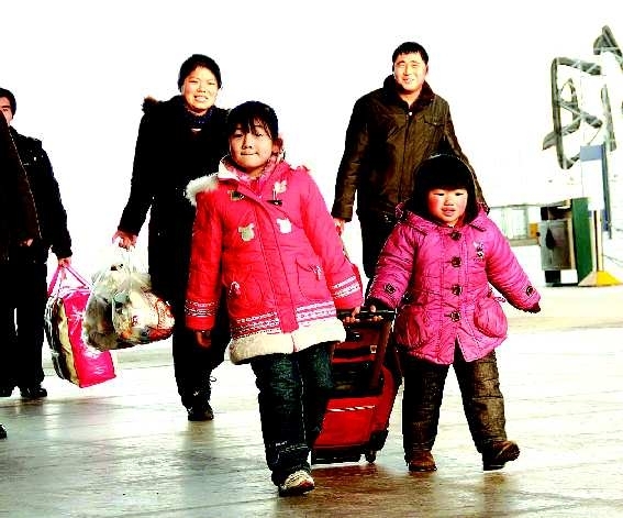 随着春节临近,众多在烟台工作的外来务工人员开始返乡过年,而那些异乡的“小候鸟”们也跟随父母踏上了回家的旅程。虽然回家路途漫长而辛苦,但是只要和家人在一起,就是温暖幸福的。25日,在烟台火车站,孩子拖着行李箱和亲人一起踏上回家路。