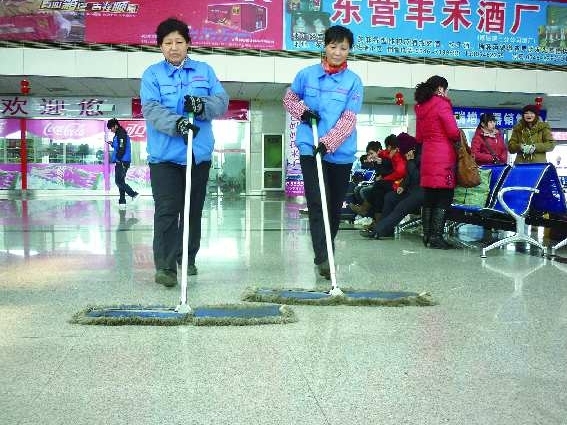 每天工作开始后,几乎没有休息的时间。正在拖地的薛女士说:“工作太忙了,下午6点下班想去菜市场人家也收摊了,购买年货和家里的卫生清洁工作,都是我对象做的。”张杰说,在车站已工作近3年的时间,春节期间都没有去逛过一次街。