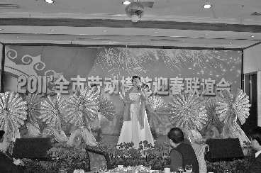 25日,由济宁总工会主办的2011劳模迎春联谊会在圣地酒店举行。劳模代表现场表态,将继续勤奋学习、爱岗敬业、团结拼搏。联谊会现场精彩纷呈,演员们表演了《红梅赞》《变脸》等经典节目,还有动感十足的现代舞穿插。
