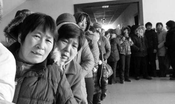 26日上午9时,在这家大型企业分公司的财务室前,1800名农民工排起了长长的队伍。大家都在翘首以盼,希望能早点拿到春节前最后一个月的工资。