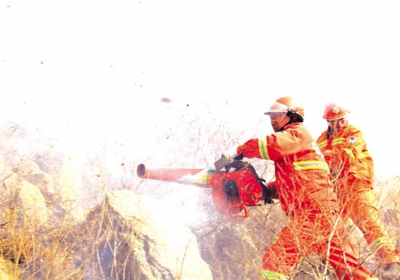 25日,泰安市岱岳区人武部针对近期气候持续干旱,防火形势异常严峻的情况,组织民兵防火分队展开了一次山地防火演练。春节临近,防火、防盗成为大家关注的话题。本报记者 刘丽 通讯员 赵兴国 摄
