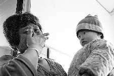 上午不到十点,记者跟随青岛市红十字会及市司法局工作人员首先来到胶州李国青的家。一进门,一只小狗立即“汪汪”地叫起来,自从李国青父子因抢劫被判刑后,李国青的儿媳也离开了家,家中只剩下李国青的52岁的老伴和3岁的孙子相依为命。“家里怎么没生炉子啊,这么冷?”虽然是室内,但温度比室外高不了多少,小孙子的脸冻得红红的。“不怕你们笑话,儿子进去后,媳妇就和他离婚了,现在家里就我一个人带着小孙子,种不了地,也就没什么东西可烧。”李国青的老伴搂着小孙子说,现在她没有了经济来源,就靠一点低保生活。