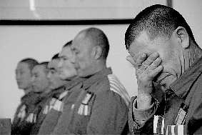 在走访了两个服刑人员的家人后,工作人员来到了青岛监狱,把走访的录像播放给服刑人员看。记者注意到,52岁的李国青坐在数十名服刑人员中显得很苍老,在看到录像里3岁的小孙子和老伴时,李国青一直抿着嘴,脸上没有什么表情,到了最后他用力抹了一把脸,泛红的眼睛自始至终没有离开大屏幕。