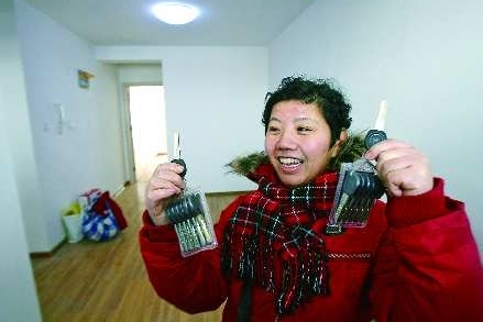 “高兴!真高兴!我们打算今天下午就搬过来。”刚领到钥匙看房的王女士告诉记者,他们的新房在12号楼1单元,是一套51平米的房子。在屋里来来回回转了好几圈,王女士高兴地一直没合上嘴。她在外面已经租房4年多了,现在终于有了一套新房,今年春节可以在这过年了。