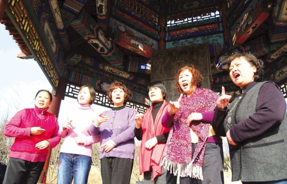24日上午,六位京剧票友在市政广场公园的古亭内,演唱京剧《红灯记》选段。据悉,这六位票友组成了“”演唱组,平均年龄56岁。