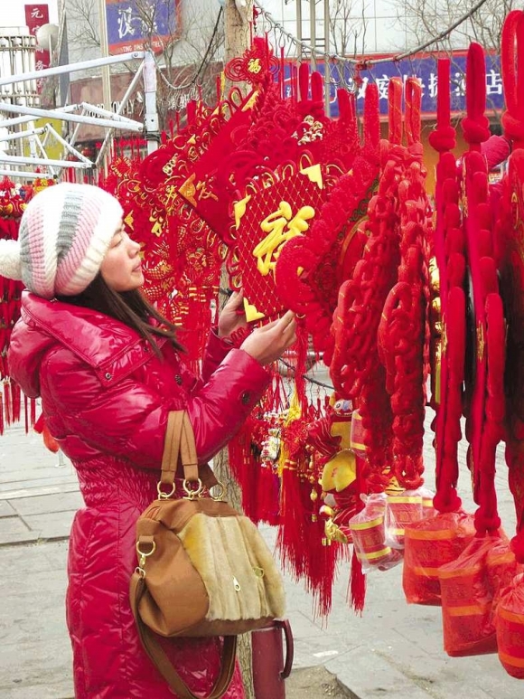 27日,记者在泰城财源大街中段看到,不少市民在选购春节挂件。记者看到,挂件以红色为主,有中国结、年年有余、“福”字等。市民告诉记者,买点挂件装饰一下,更显年味。