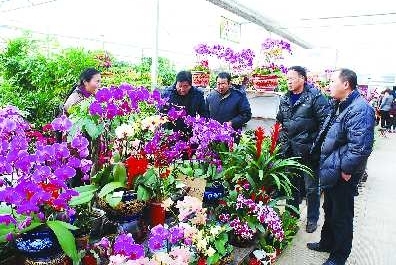 1月24日,在市区某花卉市场内,许多市民正在挑选花卉。