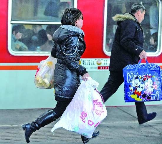 30日,两位乘客在车辆启动的前夕狂奔上车,回家过年。由于目前济南市区通往火车站的主干道极度拥堵,导致许多乘客赶车难,许多人因此十分焦急。 本报记者 周青先 摄