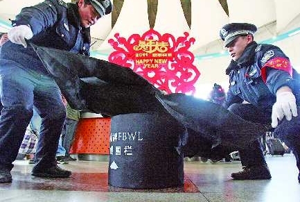日前,一种携带方便、操作简单、抗爆性优的新型防爆器材在济南长途汽车总站演习使用。据了解,新型防爆器材由两部分组成———防爆围栏和防爆毯,两者配套使用,一旦发现可疑爆炸物,只需将可疑爆炸物放置在防爆围栏中心,并迅速覆盖防爆毯。新型防爆器材首次用于春运安保,对春运客流高峰期旅客安全起到了有力保障。