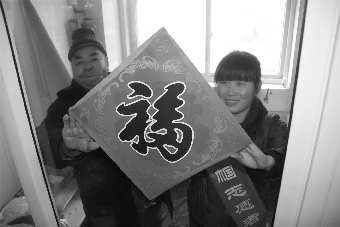 1月28日,罗庄区盛庄街道大埠东社区巾帼服务队一名队员,正在为七旬孤寡老人韩民堂张贴“福”字。