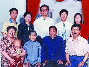 1997年春节全家福,是在照相馆拍的。女儿已大学毕业,分配到银行工作,并结婚生了外孙。大儿子大学毕业分配在济南工作,1996年结婚。家庭条件好了,把父母亲接到了县城。全家其乐融融。