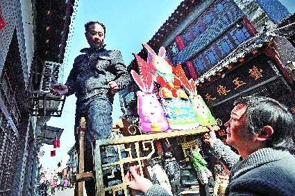 2008年春节,杨峰将自己的“兔子王”工作室设在了泉城标志性老街———芙蓉街,专营“泉城兔子王”等独具济南文化特色的旅游纪念品。