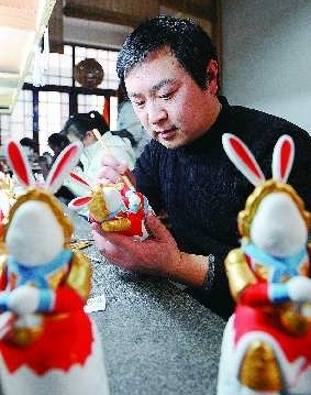 杨峰,新一代制作人,他是土生土长的济南人,从小就喜欢那个用泥巴塑成的“兔子王”。为了让更多现代人喜欢这项传统艺术,学装潢的他利用业余时间创作出有时代特色的“兔子王”四个新形象:兔子王、兔小儿、兔妮儿、兔宝儿。