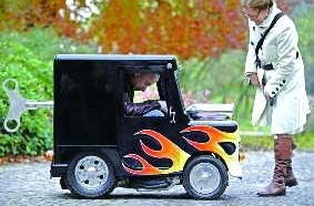 佩瑞·沃特金斯蜷坐在自己的车里,这辆车高1米,长1.3米,宽0.7米,最高时速70英里并配有安全带。