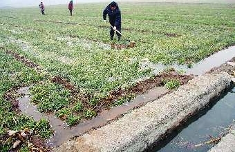 11日,枣庄市中区孟庄镇崖头村农民在为小麦浇灌“返青水”。 赵慧 吉喆 刘勇 摄