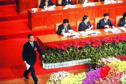 14日上午,省政协十届四次会议举行大会发言,22位省政协委员发言总共用时两个小时,这是人均发言时间最短、发言人数最多的一次省政协大会发言。图为省政协委员徐茂波(左一)上前准备发言。 本报记者 王媛 摄