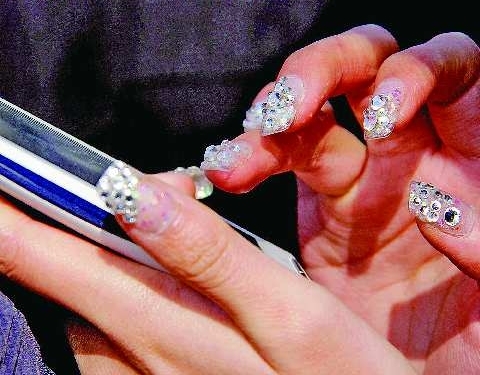 自述:镶满“钻石”的时尚指甲。
