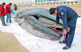 1月19日,一头长须鲸在日照市南部涛雒镇附近约1.5米水深的海滩搁浅,虽然渔民将其拖入了深水区,但鲸鱼还是没能逃脱死亡的命运。1月20日深夜,这条鲸鱼被打捞上岸,重达15吨,最宽处直径为2.22米。1月25日,山东省渔政监督管理处作出批复,同意日照市水产研究所负责标本的制作,标本制成后,由日照市水产研究所妥善保存。