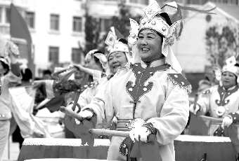 14日上午,在樱园社区广场上,奎文区2011年“祥兔迎春”春节文化活动汇演拉开序幕。伴着铿锵有力的鼓声、舞着绚丽多彩的绸缎、露着喜庆欢乐的笑容,一个由老年艺术队表演的《舞鼓》节目赢得了台下阵阵掌声,虽然天气寒冷,但老人们个个热情洋溢。据了解,当日的汇演主要突出传统民间特色文艺,丰富老百姓生活的同时更弘扬了传统文化。
