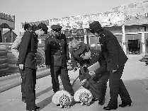 为让农民购买到放心合格的抗旱农机具及物资,禹城市工商局近日组织力量加大对农资市场、抗旱物资市场的监管力度,保证涉农物资供应。图为,执法人员对抽水设备进行检查。